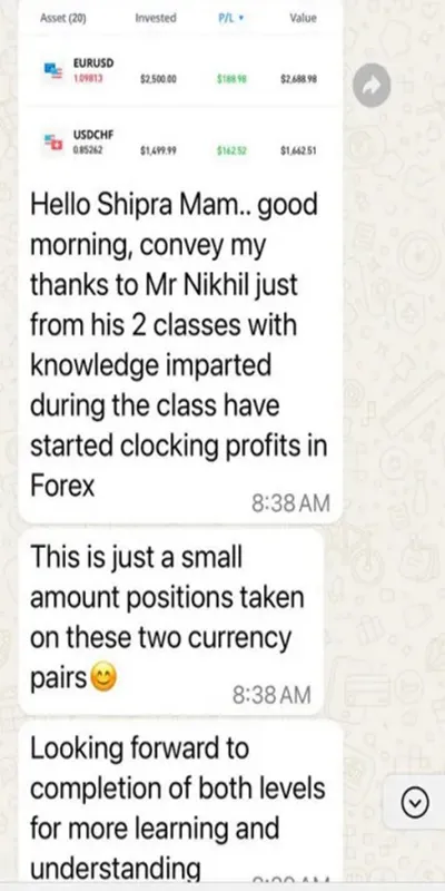 This was a great beginning to my trading journey. The level 1 course gave a solid foundation in Forex, with unique theoretical insights and practical knowledge given by Mr. Nikkhil. Everything was explained clearly with powerful analogies making it easy to follow even as a beginner.